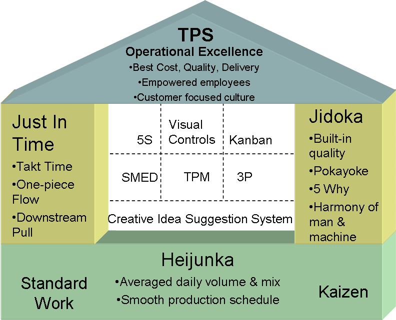 Most major lean programs recognize at least four or five principles related to lean. These all stem from the original house model that Toyota built. Teams, Standardization, Just in Time, Built in Quality and of course Continuous Improvement are recognized as some of the ways to describe those principles.