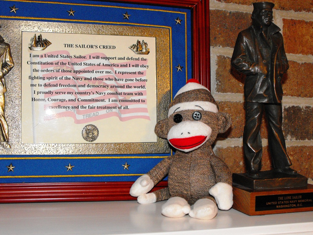 Sock Monkey reminded me that our freedoms have been paid for in the sacrifices of the men and women who served this country. Their blood still stains the pages of history even as some people are trying to re-write the books to suit their needs.