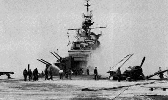 From the Naval Historical Archives, another ship recovers from a kamikaze attack