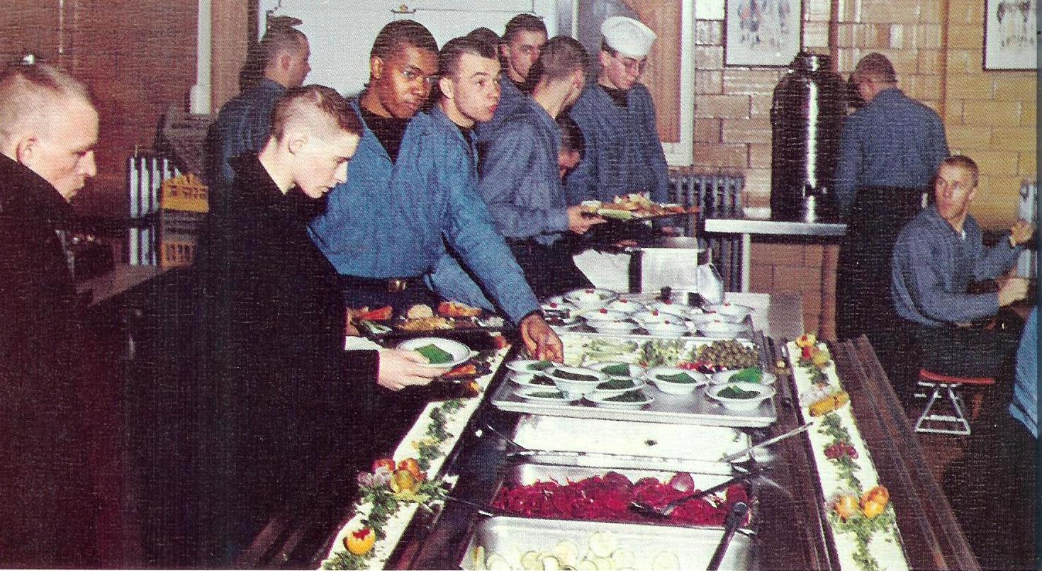 Through the next year of schools around the country, I discovered the Navy’s seemingly endless generosity with their food offerings. A school, Sub School, FBMSTC in Charleston and finally the Submarine Base at Pearl Harbor had great galleys filled with men whose only purpose in the world was to see that the Navy was fed well. The price was exactly right (free back in those days with a meal card) and that wonderful welcoming sign still showed up no matter where you went “Take all you want, eat all you take”. Fortunately my age and metabolism still protected me and the uniforms provided held up fairly well throughout the journey.