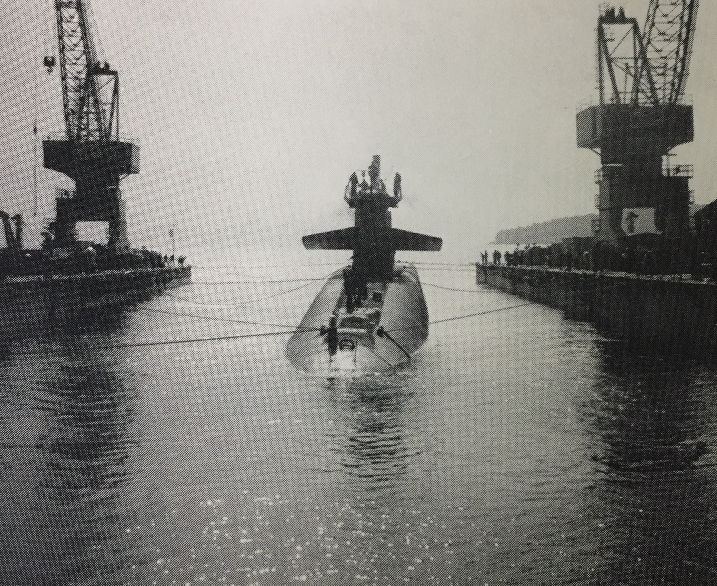 The Los Alamos was resurrected from a graveyard in Florida in the early 1960’s. She had been placed in storage at the end of World War 2 in the late 1940’s. When the new Polaris submarine program was introduced, the need for a portable servicing facility was determined. In this case, a small body of water on the west coast of Scotland was deemed suitable. For that reason, the Site One base in Holy Loch was created. Four sections of the dock were towed to the Loch and assembled by Seabees. That dock commenced operation within a short period of time and did hundreds of routine and emergency dockings over the next thirty years.