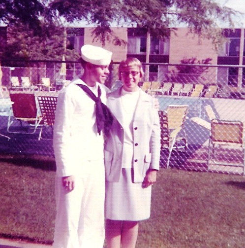Back in those days, the families could go to the gate with no problems and Mom, Dad, and my high school sweetheart all came to see me leave to go to the faraway land of Lincoln where the Navy had one of its three Boot Camps. (I had asked for Orlando and San Diego so of course was sent to Great Lakes outside of Chicago IL.) There were a lot of hugs and a few kisses and then it was up the ramp. I turned just before I went through the door and saw them all standing there. The girlfriend was sobbing, Dad had his arm around Mom, and Mom just had this sad look on her face. One of her children was leaving forever and he would never be the same again.
