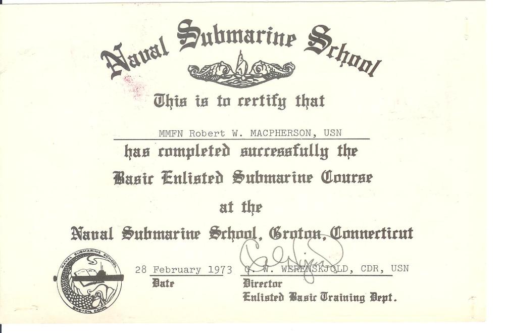 The next six months were fast and filled with all kinds of new adventures. Boot Camp, Machinist Mate A school, and temporary duty when I failed to make the needed requirements for Nuc school. Somewhere in the whirlwind of activity, someone sat down with me and placed a pile of paperwork in front of me. Since I was no longer going to nuclear power training, there were some forms to sign and the need to refocus on a different path. One of the options was to volunteer to undergo submarine training and ultimately serve on a boat. I will freely admit that I didn’t give it much thought at the time. The idea of making an additional fifty five dollars a month seemed to be the biggest motivator at the time. The decision to volunteer would change my life. And it would change my Mom’s life, too.