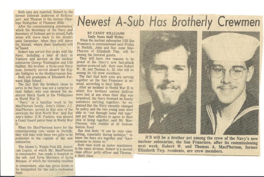 I will freely admit that I have never been a Mom of a submariner. But I did have a Mom that had two boys on board submarines who would eventually serve for over twenty years. For nearly four of those years, my brother Tom was on the same boat with me.