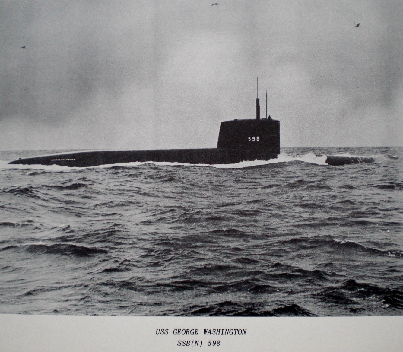 USS George Washington (SSBN-598) was the United States’ first operational ballistic missile submarine. It was the lead ship of her class of nuclear ballistic missile submarines, was the third United States Navy ship of the name, in Honor of George Washington (1732–1799), first President of the United States, and the first of that name to be purpose-built as a warship.