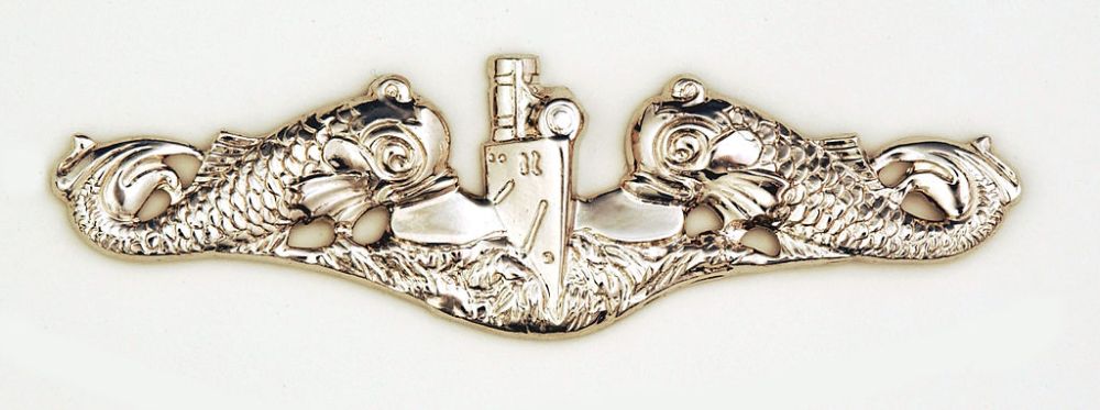 Today enlisted submariners may wear either a silver-color metal pin or an embroidered dolphin. The latter is either white or blue, depending on the uniform worn.