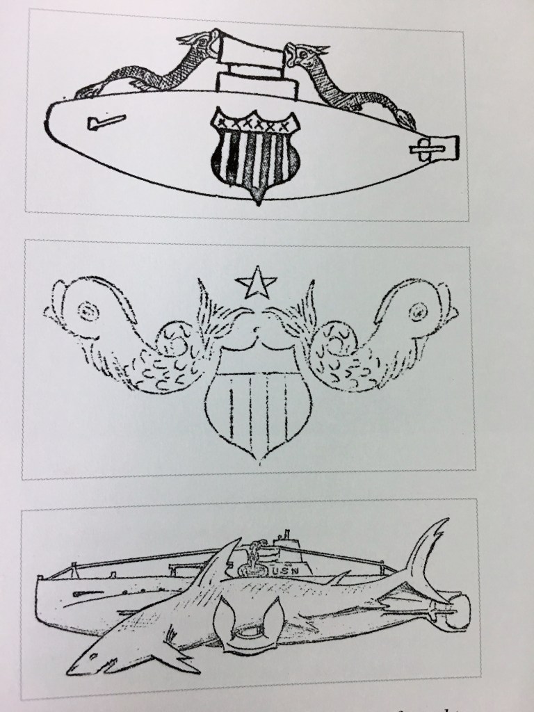 Suggestions at the time ranged from matched seahorses to a divers helmet to a wide range of submarine and dolphin configurations. One old salt on the S-1 Boat even recommended that a shark design was most appropriate. He argued that a shark would be more reflective of submariners who he said “are a fearlessly resolute bunch.”
