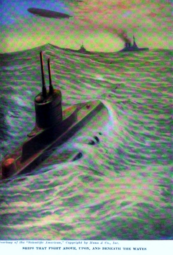 It remained for the European War, more than a century after Fulton’s design, to vindicate the prophecies that the submarine would play a great part in the struggle for the control of the seas. The war stripped the submarine of much of its mystery, for every American boy now knows something of the part it plays in naval warfare, of how it fights and how, in turn, it is hunted to be either captured or sunk.