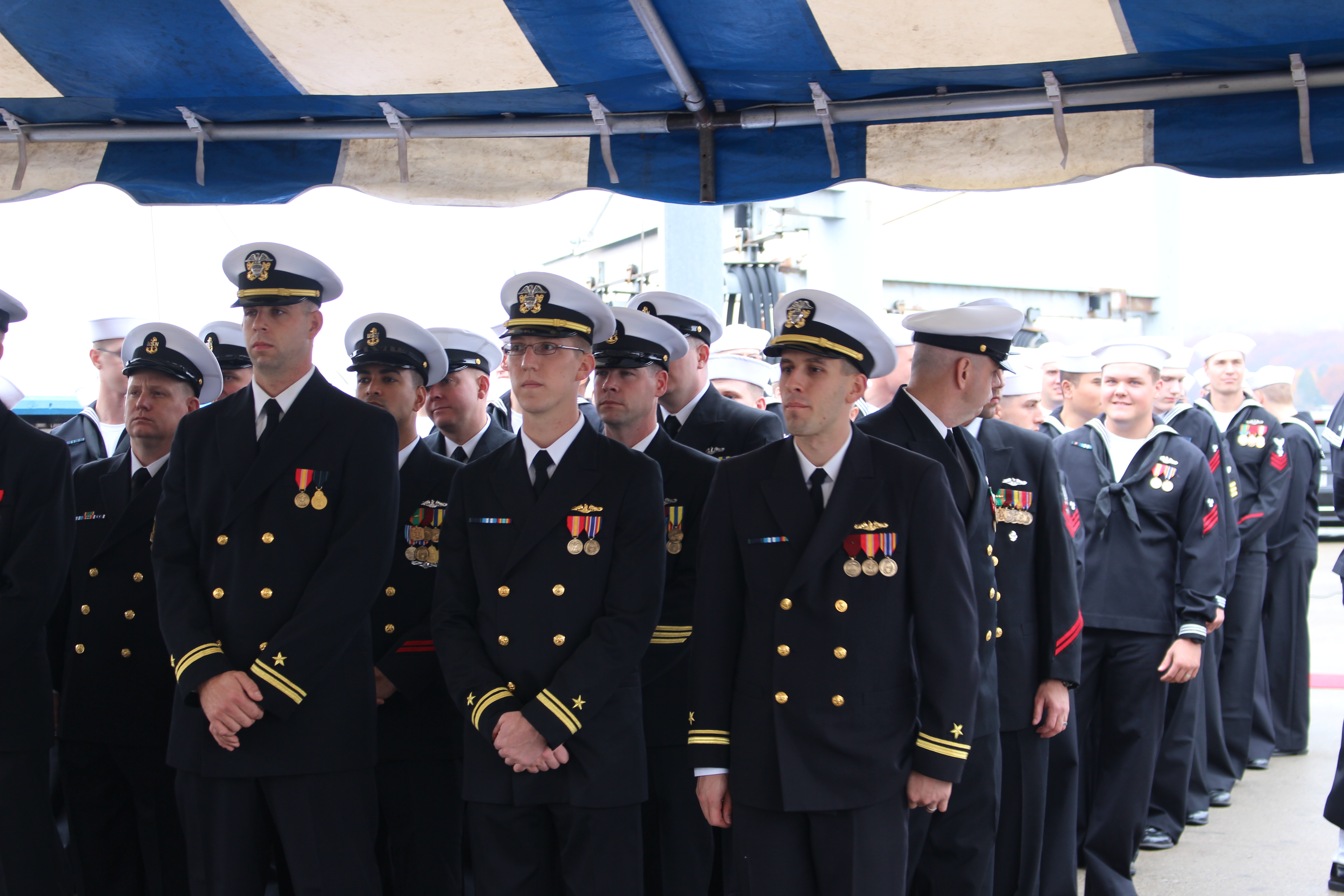 Sailors. The biggest shock to my system when I have visited the Pittsburgh or on the trip to the San Francisco was how young the officers and crew were. I don’t mean like just a bit younger, I mean like “are you old enough to drive this thing?” young. Looking out at both crews standing on the piers during ceremonies, I was struck by how very young they all looked. It’s as if someone went into a high school, picked out the largest groups of boys they could find and put uniforms on them. What was also pretty interesting was seeing the rows and rows of ribbons and medals most of them had on their dress blues. I am old enough to remember the days when ninety percent of the crew sported nothing more than a pair of dolphins and a geedunk medal or ribbon (National Defense Medal). Now, it seems like they are all decorated heroes while maintaining a youthful appearance that seems like they could be Sea Cadets.