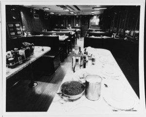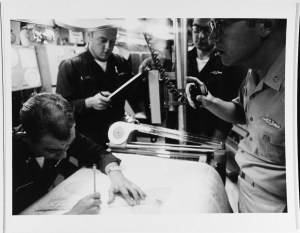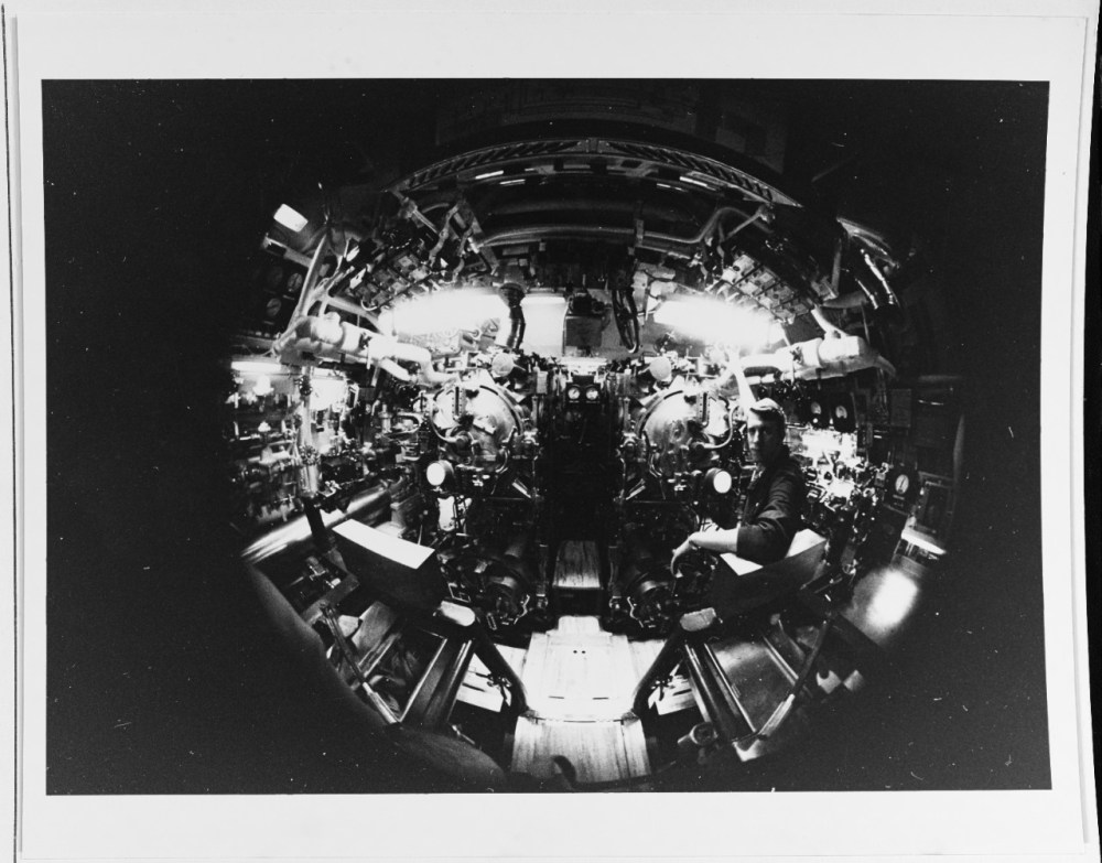 Specifications: Displacement, Surfaced: 7,250 t., Submerged: 8,250 t.; Length 425′ ; Beam 33′; Draft 32′; Speed, Surfaced/Submerged 20+ kts; Complement 120; Test depth 1,300′; Armament, 16 Polaris missile tubes, four 21″ torpedo tubes; Propulsion, S5W Pressurized Water Nuclear Reactor, two geared turbines at 15,000 shp, one propeller.