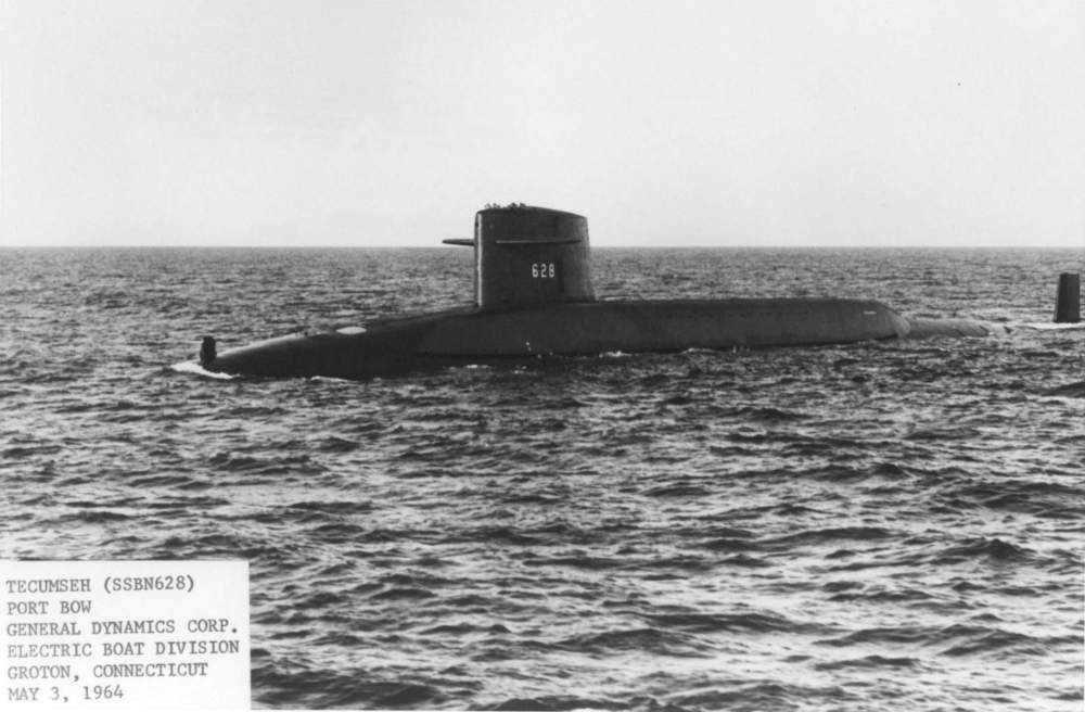 The fourth Tecumseh (SSBN-628) was laid down on 1 June 1962 at Groton, Conn., by the Electric Boat Division of the General Dynamics Corp.; launched on 22 June 1963; sponsored by Mrs. Robert L. F. Sikes; and was commissioned on 29 May 1964, Comdr. Arnett B. Taylor (blue crew) and Comdr. Charles S. Carlisle (gold crew) in command.