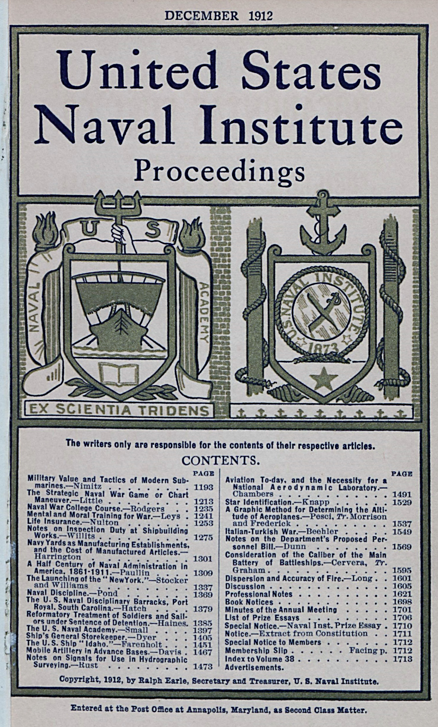 Military value and tactics of modern submarines.   Proc. U. S. Naval Inst., 1912, Dec., vol. XXXVIII, pp.   1193-1211.