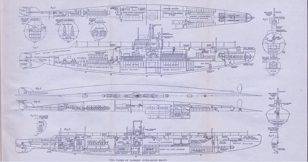 As regards control on surface and submerged, the two types are practically the same. The submerged radius of action of the submersible is slightly less than that of the submarine, while its radius of action on the surface is slightly greater.