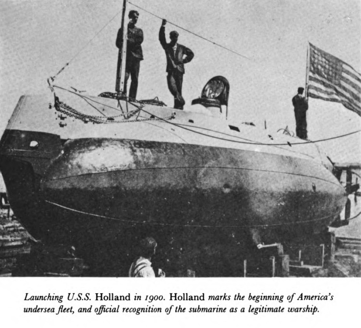 “As a Midshipman at the Naval Academy, I had my first ride in the United States Navy’s first submarine—USS HOLLAND. Thus in the brief span of my life, I have seen the Submarine grow “from a boy to a giant” of the Polaris submarine with strength untold for our land of freedom.