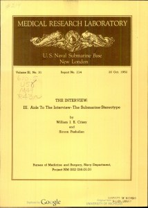 The Submariner Stereotype forms of 1125 candidates processed at the Naval Medical Research Laboratory, Submarine Base, New London, during the period September 1950 to September 1951 were used for the present study. To interpret the data on the submarine candidates, the Submariner Stereotype was also administered to two different Navy groups: (a) Four-hundred eighty non-selected enlisted men passing through the U. S. Naval Receiving Station, 13 Brooklyn, New York, in December 1951 ; and (b) Five-hundred recruits at the US. Naval Training Center, Bainbridge, Maryland, in September-October 1951. Analysis was made by contrasting prospective submariners ‘ responses, item by item, administration by administration, with the responses of the recruits and the receiving station personnel.