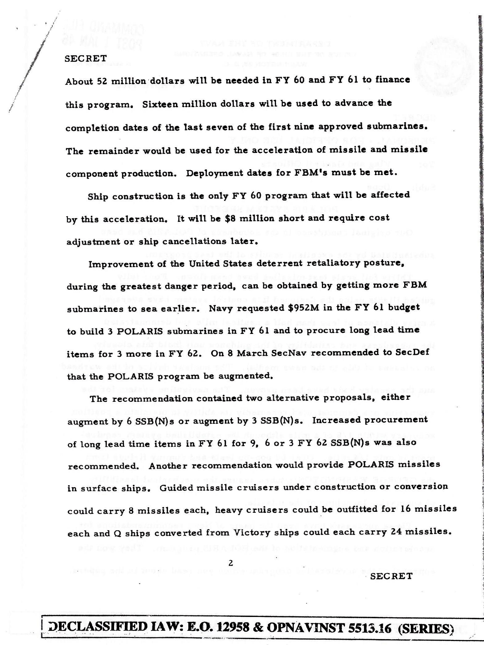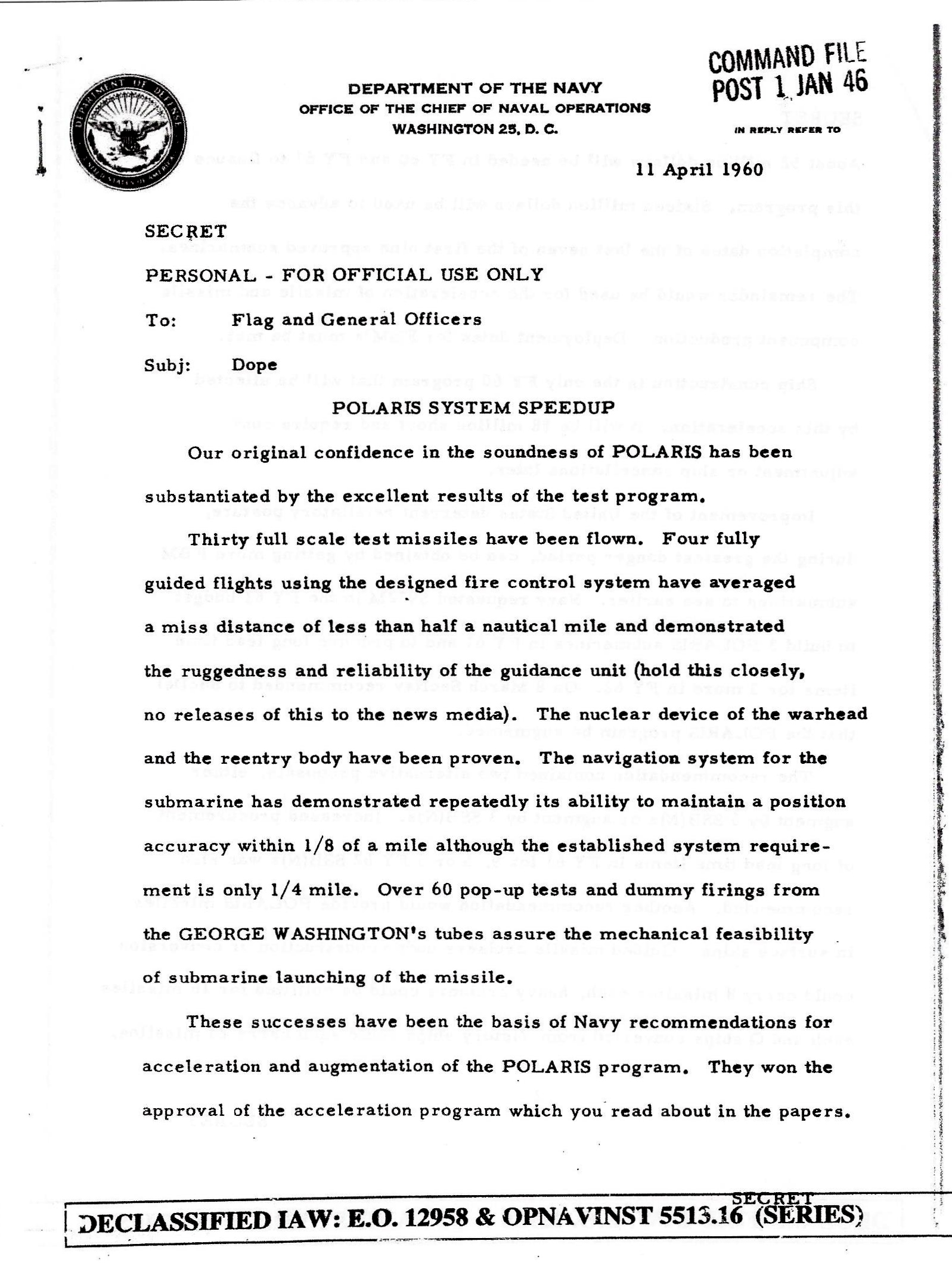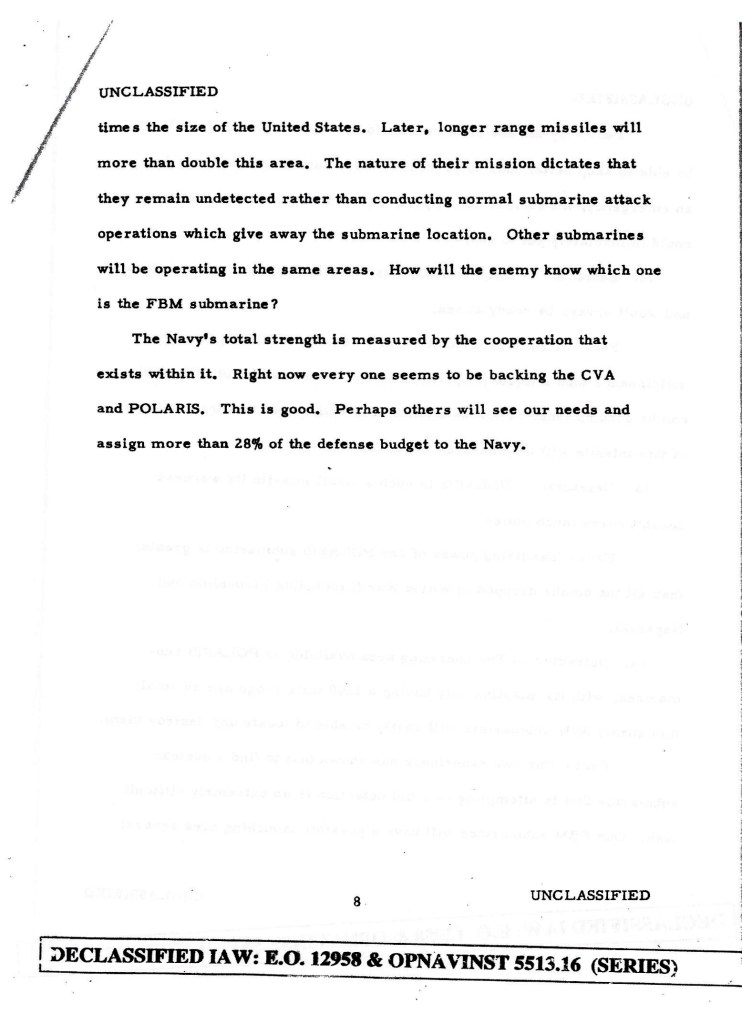 By April of 1960, Admiral Arleigh Burke felt the need to publish one of his secret memos for the Flag and General Officers to discuss how to deal with the detractors.