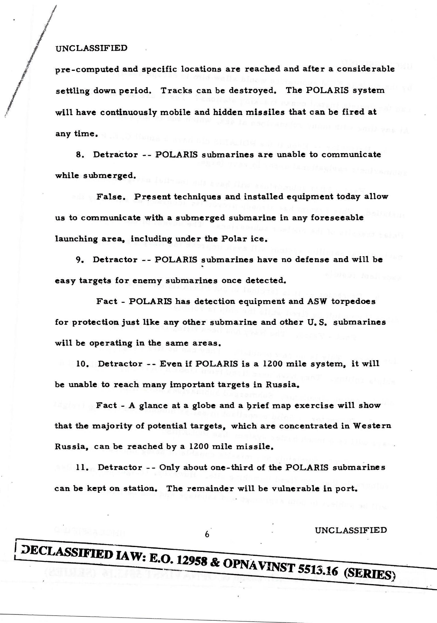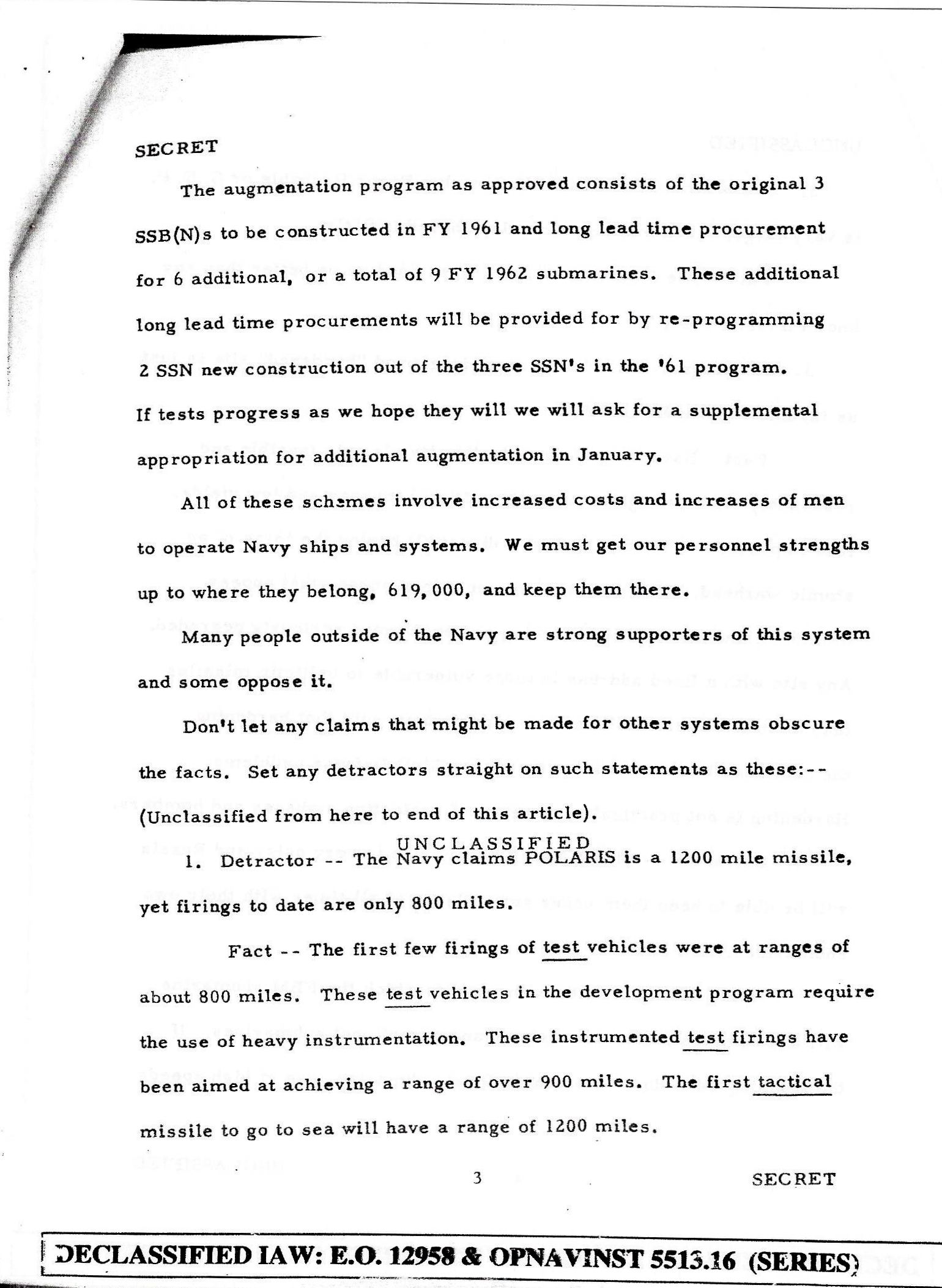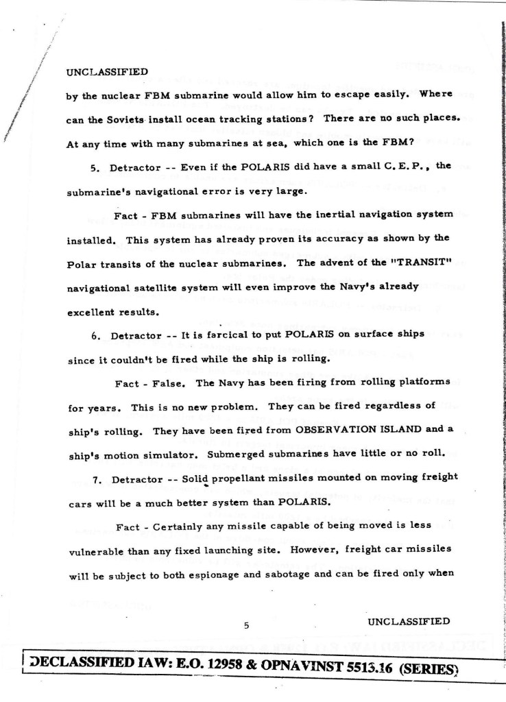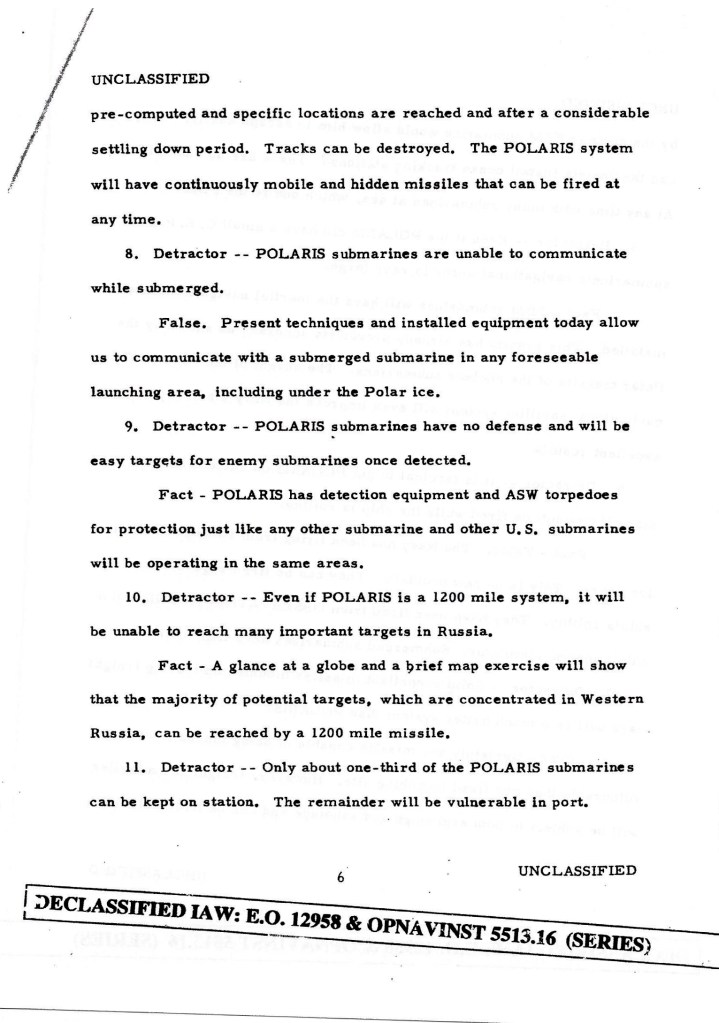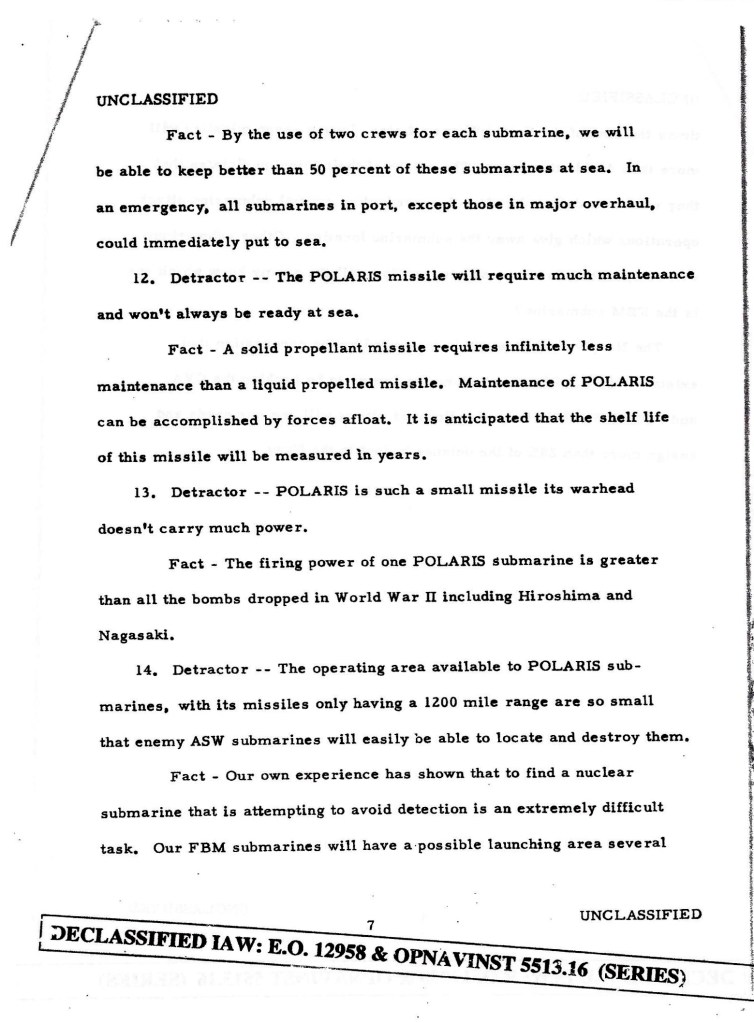 But that didn’t stop the efforts to diminish existing submarines and especially attacking Polaris. Sniping in the Pentagon and in the Halls of Congress was supplemented by well-placed stories in the press that may have felt a duty to favor one system over another. It turns out that even before the system was fully operational. The greatest threat was from people who had alternative visions to defending our nation. Before the first real proof was settled that Polaris was a viable option, detractors came from all corners.