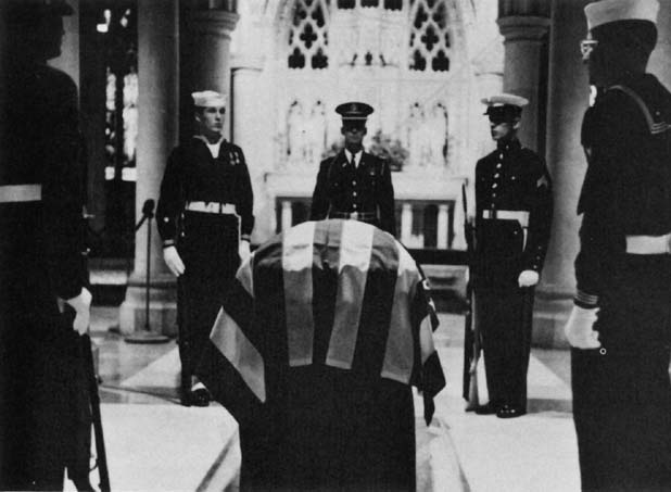 Outside the Fort Myer Chapel fourteen honorary pallbearers lined the entrance walkway: General Lyman L. Lemnitzer, Robert A. Lovett, General Walter Bedell Smith, Robert Woods Bliss, James Bruce, Admiral Harold R. Stark, General Charles D. Herron, Brig. Gen. Frank McCarthy, Col. Robert H. Fletcher, Col. William M. Spencer, Donald Cook, Lt. Col. Clarence J. George, M. Sgt. James W. Powder, and M. Sgt. William J. Heffner.