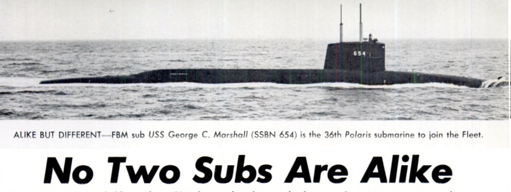 USS George C. Marshall (SSBN 654) is not exactly like her sister ships. She is, nevertheless, representative of the Fleet ballistic missile submarine.