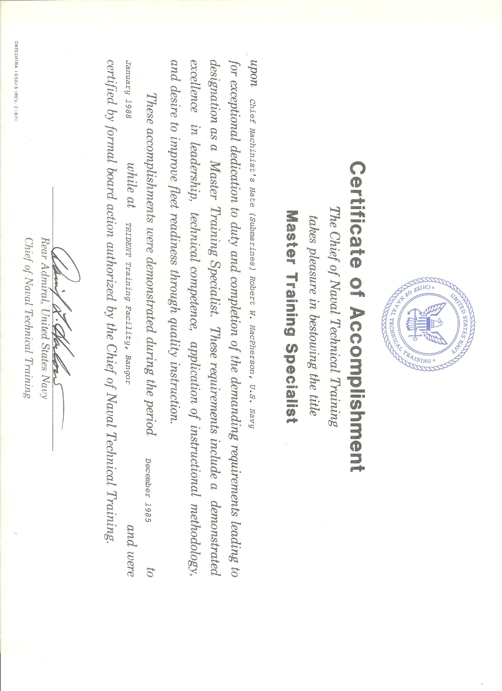 I also achieved a title called Master Training Specialist.