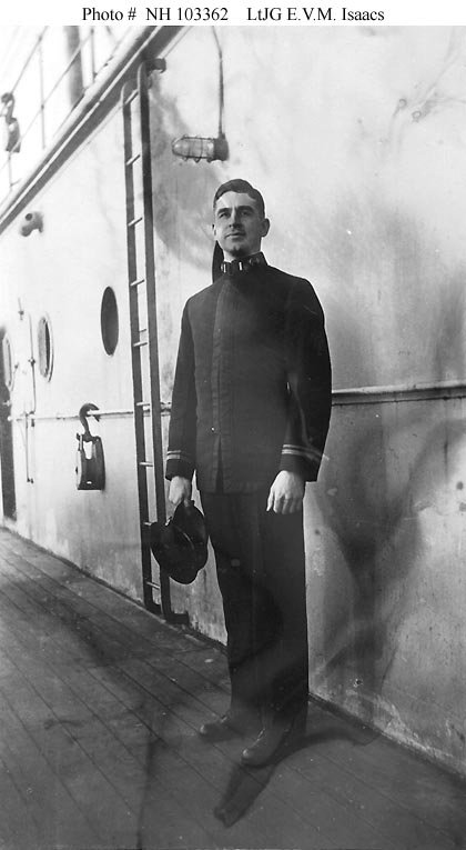 He then walked for three nights, hiding during the day, to the Swiss border, and swam the Rhine. In Switzerland he reported to the American Consul, who informed Admiral Sims and Isaacs was ordered to Paris and then to London. He arrived in London about ten days later, very much undaunted in spirit and apparently not much the worse for the treatment he had received in the German prison camps.”