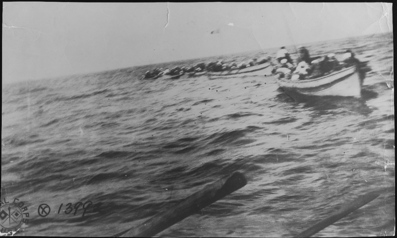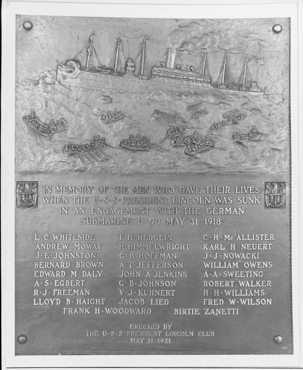 At sundown on 30 May 1918, having passed through the so-called “danger zone” of submarine activity, the destroyers left the convoy to proceed alone. At about 09:00 on 31 May 1918, the President Lincoln was struck by three torpedoes from the German submarine U-90, and sank about 20 minutes later. Of the 715 people aboard, 26 men were lost with the ship, and a Lieutenant Edouard Izac was taken aboard U–90 as prisoner. Survivors were rescued from lifeboats late that night by destroyers Warrington and Smith. They were taken to France, arriving at Brest on 2 June.