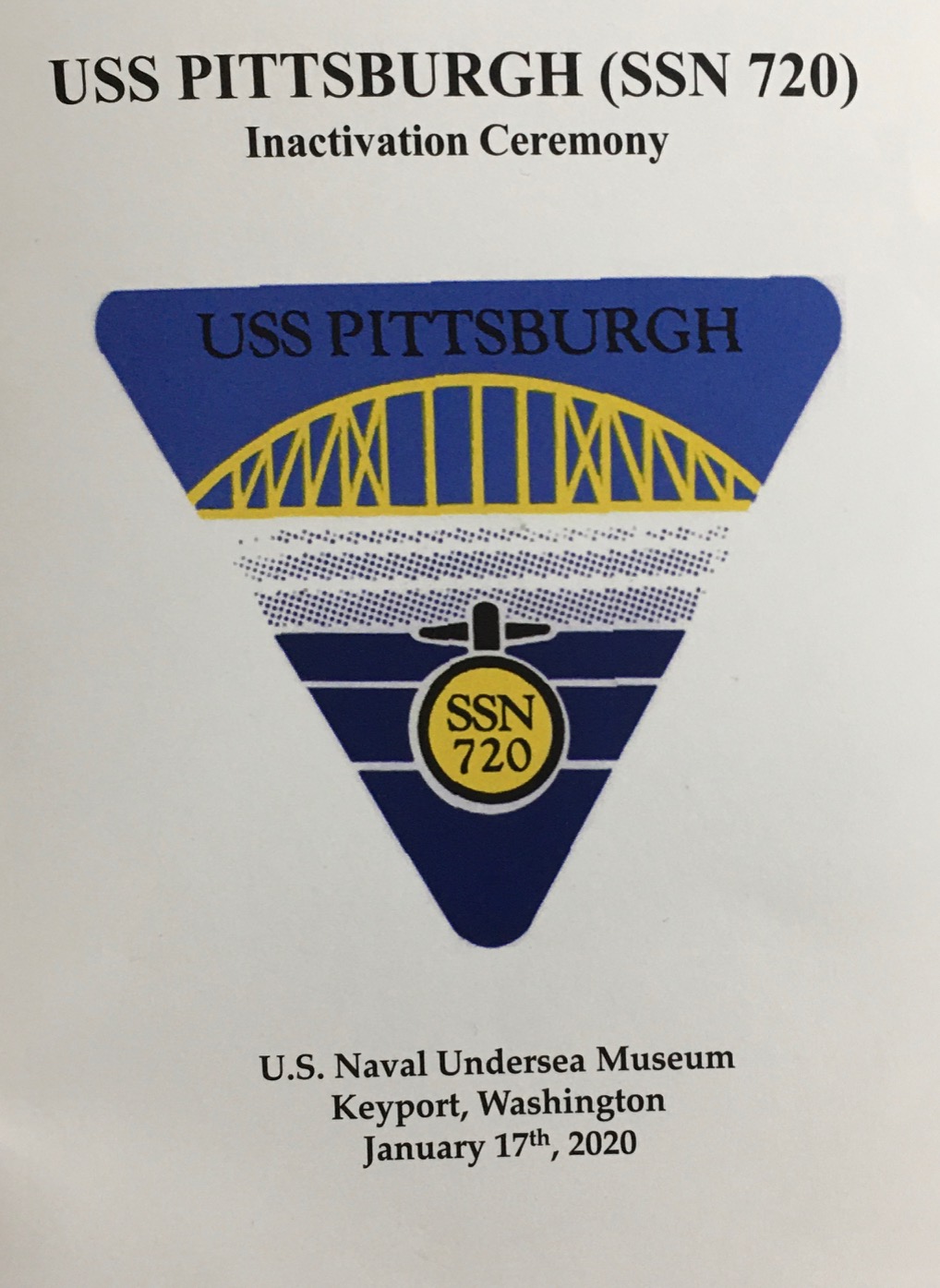On Friday, January 17th 2020, the USS Pittsburgh Captain and crew hosted an inactivation ceremony at the Keyport Washington U.S. Naval Undersea Museum. The auditorium was filled with current and past crews and Commanding Officers.