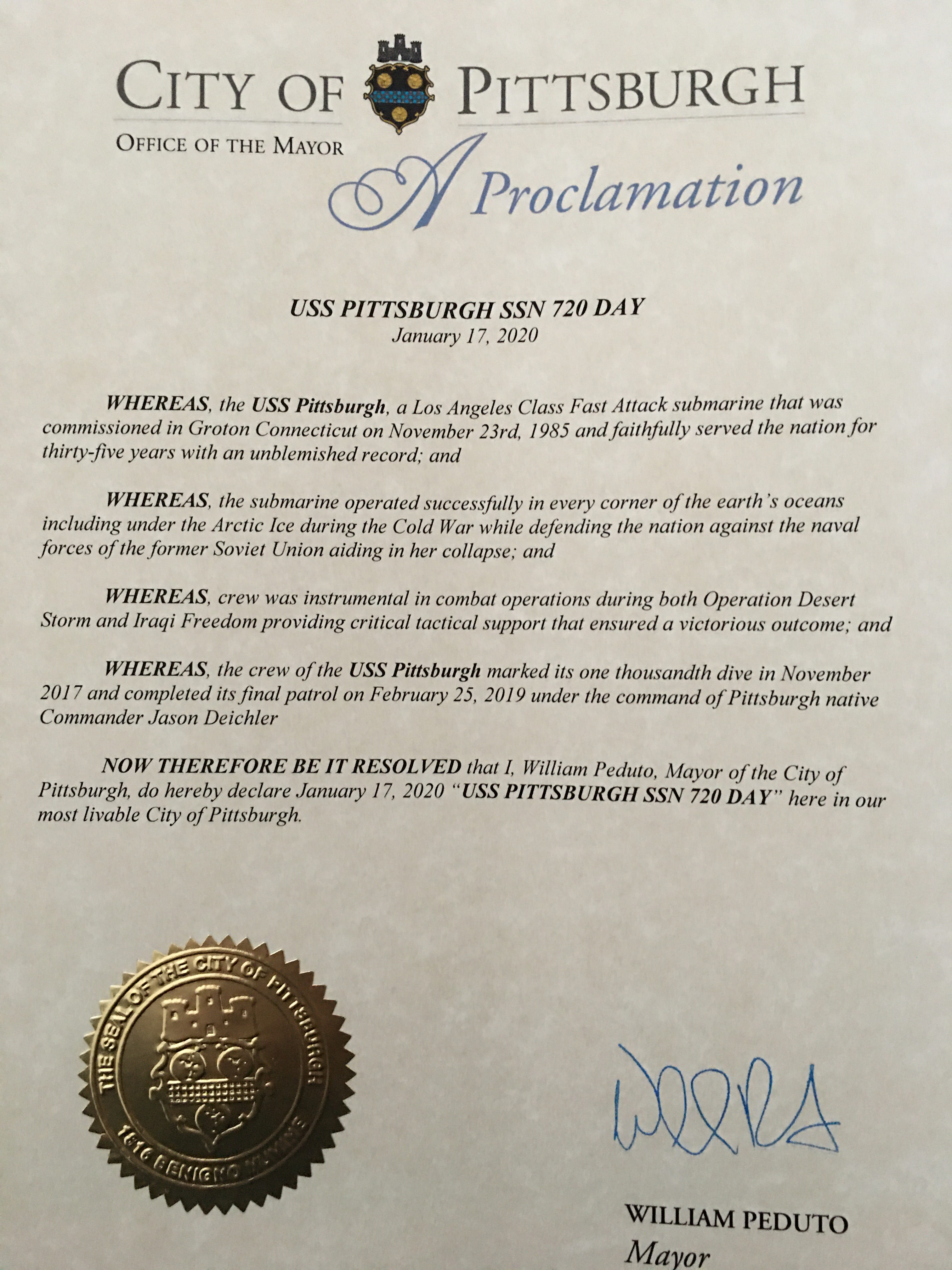 One thought on “USS Pittsburgh SSN 720 Inactivation Program from January 17, 2020”