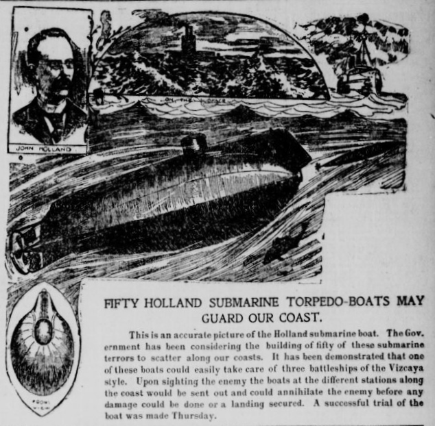 The contract was awarded the Holland Torpedo Boat Company, of New York, and the work of building this “terror of the seas” was begun. She was completed a short time ago, and, after the most thorough trials, proved herself successful in every way.