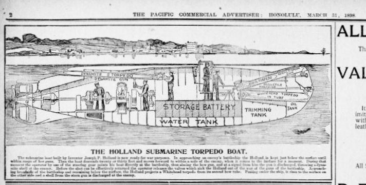 “Among the facts stated in the first part of my report, I have described the Holland Torpedo station and sketched the daily routine. I might observe that this Is precisely what the Government would do did it possess a station of the kind. It is also precisely the routine to be observed by a Torpedo Beat at sea, lying in wait for an enemy. That is to say, while motionless or in cruising trim, the batteries can be recharged and the air tanks filled ready for the approach of an enemy, until the fuel for the gas engine is nearly exhausted.