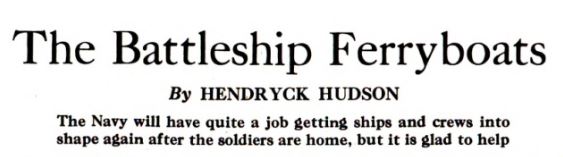 The Navy will have quite a job getting ships and crews into shape again after the soldiers are home, but it is glad to help