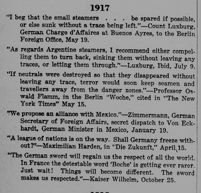 “As a matter of fact,” said an American naval authority to-day, “we have many plans hero for larger submarines than the 7,000-ton Invention mentioned. The idea of a big submarine is nothing new to us. Both of the plans submitted to us provide for bigger guns than those which the 7,000-ton craft would carry, which are said to be 8-inch and 3 ½ – inch. However, it is an involved question and whether undersea fighting ships of this size are practicable is another question. The largest submersible actually built is only 2,000 tons. We have one of that size and Germany had several. It is a big step to a 7,000-ton undersea ship.”