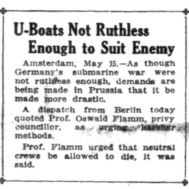 You can be forgiven if you claim to be a submarine expert but have never heard the name Oswald Flamm before today. To be honest, neither had I before I ran into this interesting thread of information that gives a glimpse into his story.