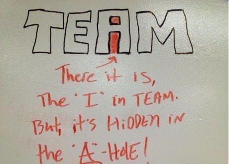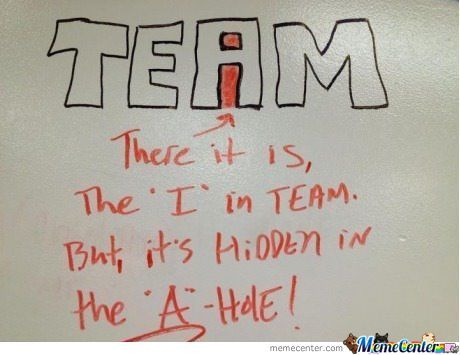 It should be “There is no i in Team”. At least until some smarty pants shows up with the poster that shows exactly where the “i” is.