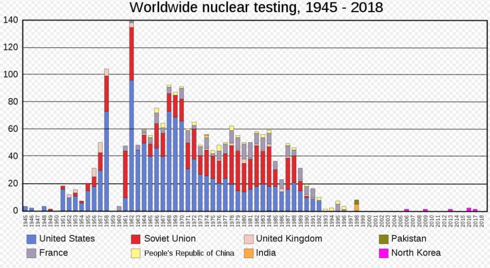 The proliferation of testing and the advances in delivery systems did nothing to calm the waters. In a tit for tat back and forth exchange, testing and new weapons were introduced with strength in the sixties and seventies. This only served to heighten the tension and seeming escalation. Remember that the American submarine fleet swelled to its full “41 for Freedom” size by the early seventies and the USSR continued to build their own underwater launch platforms with great speed. The fear of missiles dropping with little warning was a constant threat.