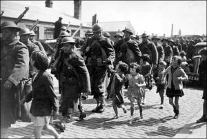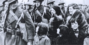 The war was going badly all over the world and British troops as well as American forces were fighting horrific battles against the Japanese in the far east. British troop were also being attacked in North Africa so there was a lot of strain on their combined forces. January 26, 1942, brought the first bit of good news about the war, as reports came in that U.S. troops had run the German U-Boat gauntlet and arrived safely in Belfast Ireland. The first contingent of several thousand American troops were warmly greeted and the Ulster band played “Marching Through Georgia”.