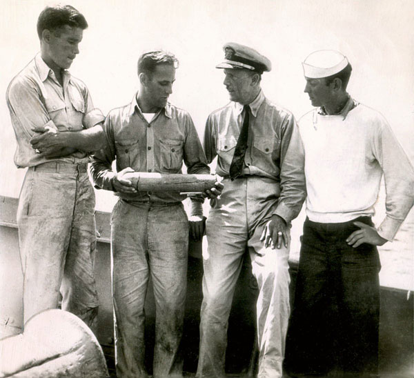 Three members of the crew were on the bridge and were thrown clear of the submarine and rescued. They were Lt. Comdr. Earle C. Hawk, commanding officer; Lt. Robert E. N. Ward and Seaman (first class) Joe B. Hurst. A buoy which had been ejected from a signal gun was located on the surface containing a message which revealed that the forward and after ends of the submarine which contained the compartments fitted for rescue work with the diving bell were flooded, and that the surviving members of the crew were in the central operating compartment. The Navy explained that owing to the design of the conning tower structure in this type of submarine, it was not possible to use the submarine rescue bell over the central compartment, even if the ship had been located in time. The submarine bell was developed some years after this type of submarine was built.