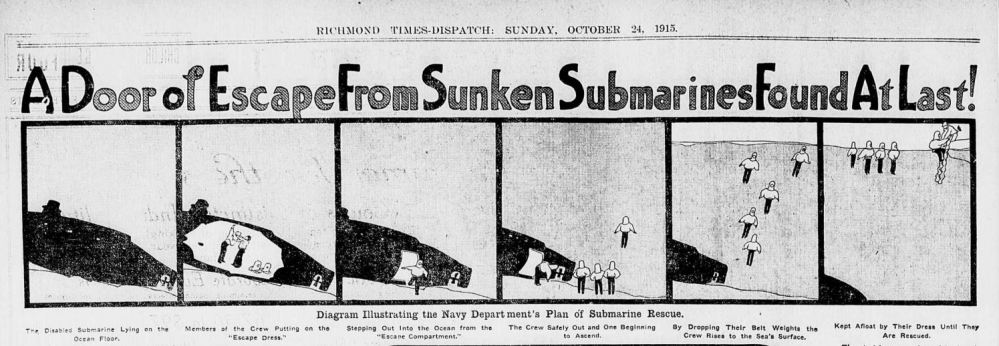 The first is the from the Annual report form the Secretary of the Navy. While there had been many minor incidents involving the fledgling submarine fleet, this one was the first major catastrophe. The ability to rescue the submariners was certainly something that the public was going to be concerned about. After all, these were their sons and husbands that had volunteered for such dangerous duty.