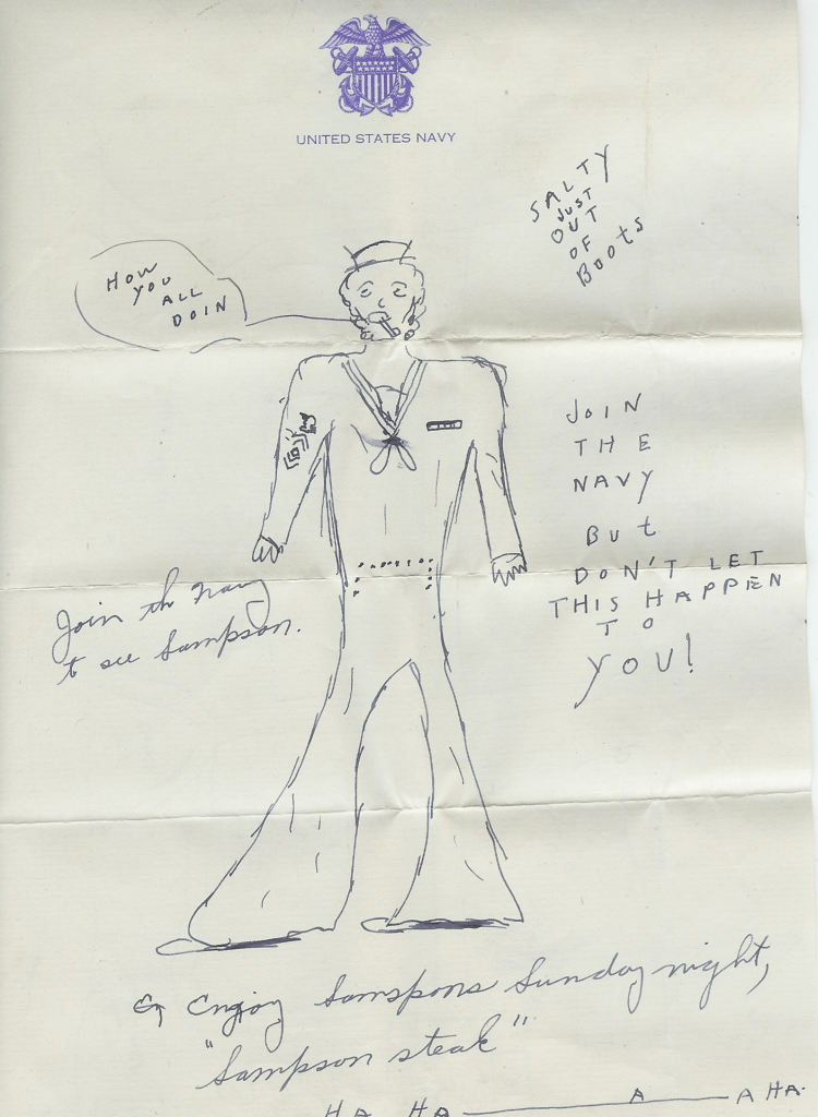 Later, when I moved on to other bases and eventually to submarines, the flow of letters would decrease. That decrease was in both directions. I finally lost the ability to write new thoughts and they probably just realized that I was not as needful of the letters that had once supported me.