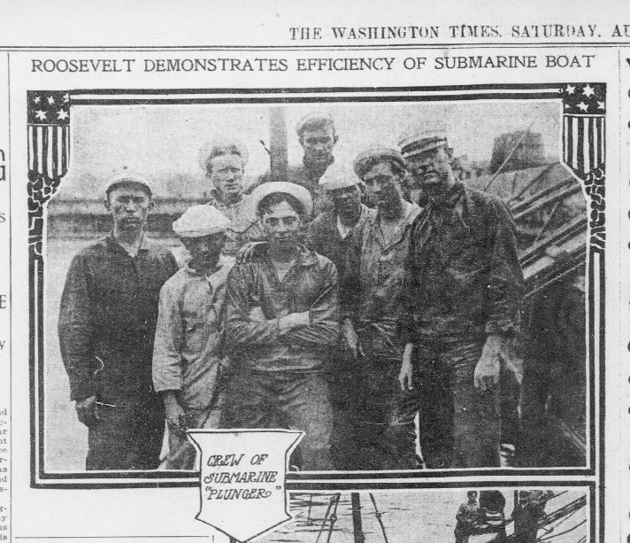 I had earlier posted the story about Teddy’s Excellent Adventure on the Plunger in 1905 but had not included any of the newspaper articles from the time period. As I got deeper into the Library of Congress Newspaper archives, I realized that there were many different aspects to the first Presidential submarine ride that have not been covered. At least not that I am aware of.