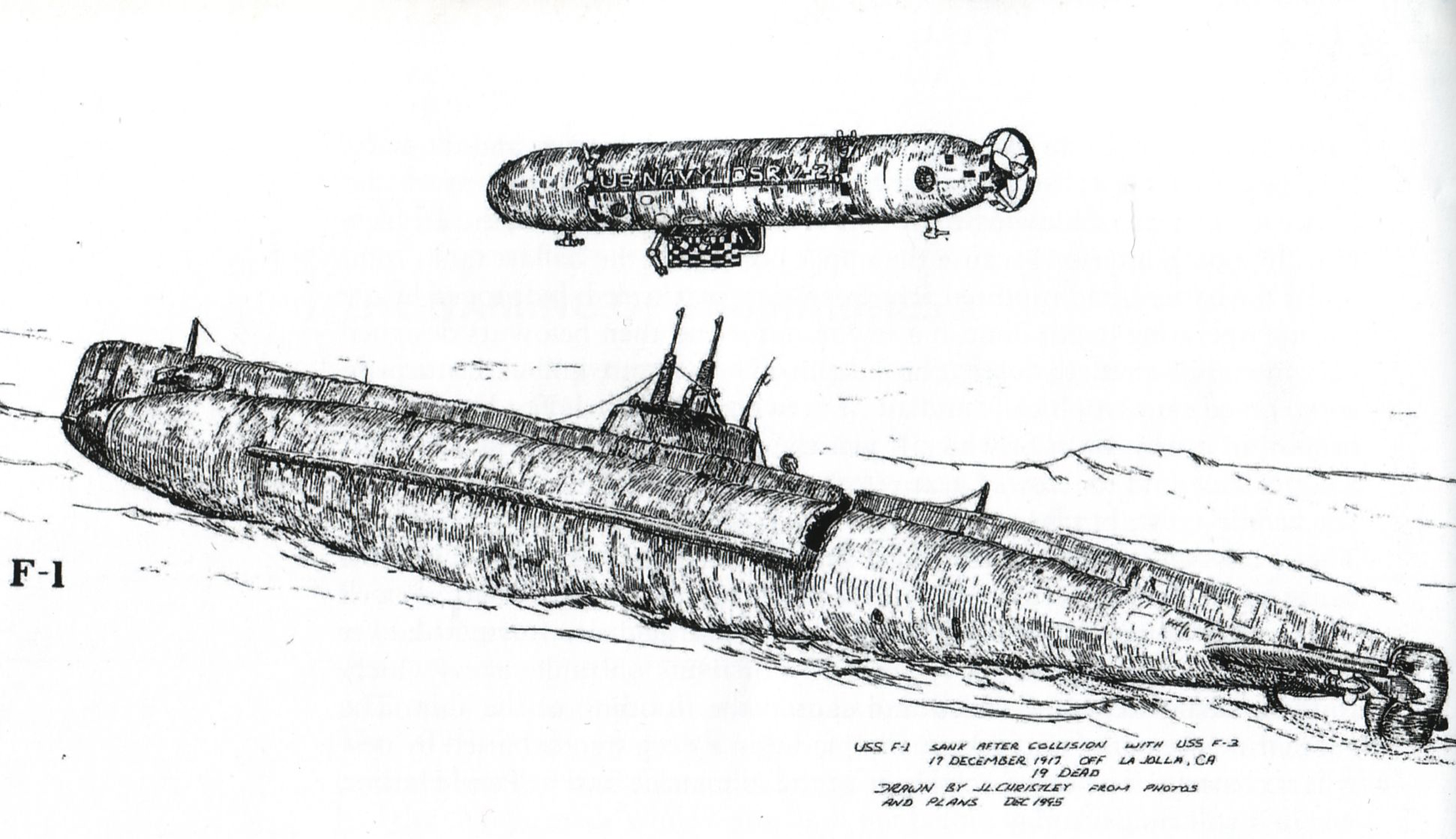 The story for today is based on the submarine F-1, formerly known as the USS Carp. The naming convention of the boats was changed from fish names to letter/numerical combinations. It would change back later but for now, this was an attempt to be more modern.
