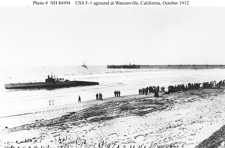 U.S. Submarine F-l Aground Off California Coast; Two of the Crew Drowned.