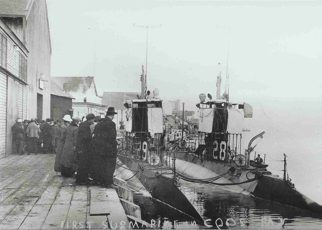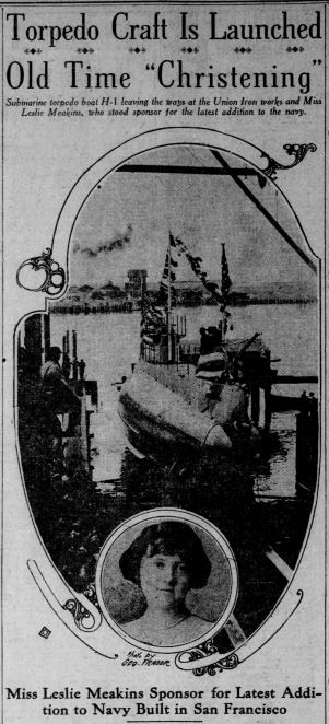 Although destined to go through life designated by a letter- and a numeral, the submarine was given an old fashioned, christening. The vessel’s sponsor was Miss Leslie Meakins, a niece of John A. McGregor, president of the Union Works.