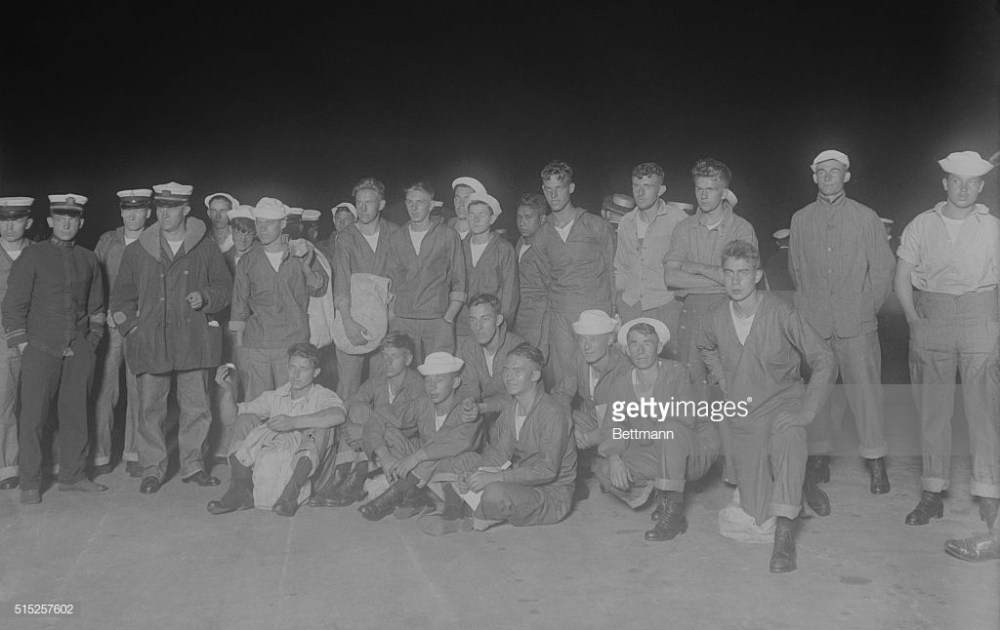 The remainder of the submarine’s crew trooped down the gangplank of the Biddle in high spirits, showing signs of their experiences but raising their voices in a typically naval interpretation of “How Dry I Am” The men were unwilling to discuss their own experiences, but they were more than willing to talk about the bravery and coolness of the commander of the submarine, Lieutenant Commander Charles M. Cooke, Jr.