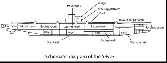 “There were thirty-six man and four officers on the S-5, “said Whitehead. “We were on our semi-annual seventy-two hour test cruise, and we had been twenty-four hours on the surface and then submerged for five hours. Then we went ahead at full speed for four hours. We had completed this series of tests and broken all records, when we started to take the last dive called for in the test – and then It happened.