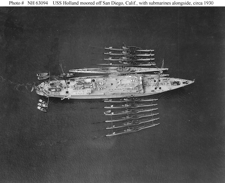 In addition to being the flagship of Submarine Division 12, Holland temporarily served as Submarine Force Flagship (March–July 1933). In June 1935, she became joint flagship of Submarine Squadron 6 and Submarine Division 12. This duty continued until June 1941 when she became flagship of Submarine Squadron 2.