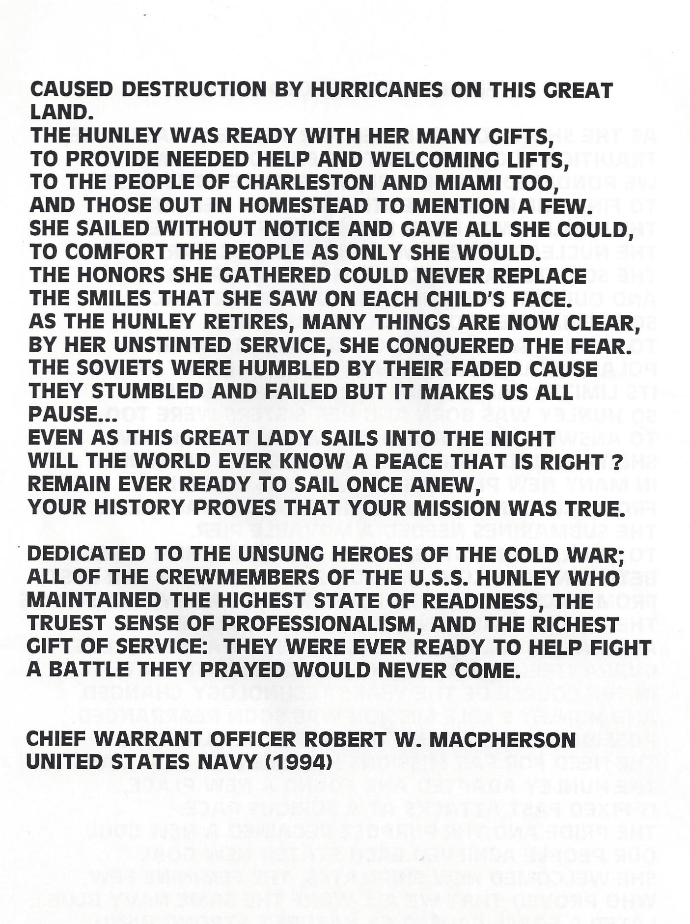The ability to repair submarines in forward areas and under very difficult circumstances set a standard that still continues today. The second USS Holland submarine tender was instrumental in maintaining a high level of operations tempo all through the cold war. While the men and later women who served on these ships may not have had the glory, their dedication and devotion to duty was second to none.