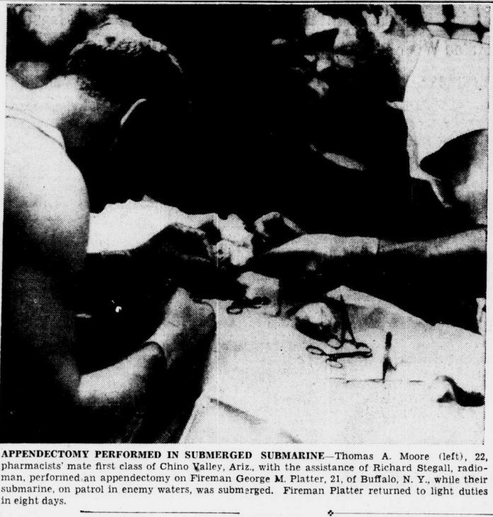 He was not a surgeon, but a chief pharmacist’s mate. Thomas A. Moore of Chino Valley, Ariz., and he never before had performed a surgical operation.