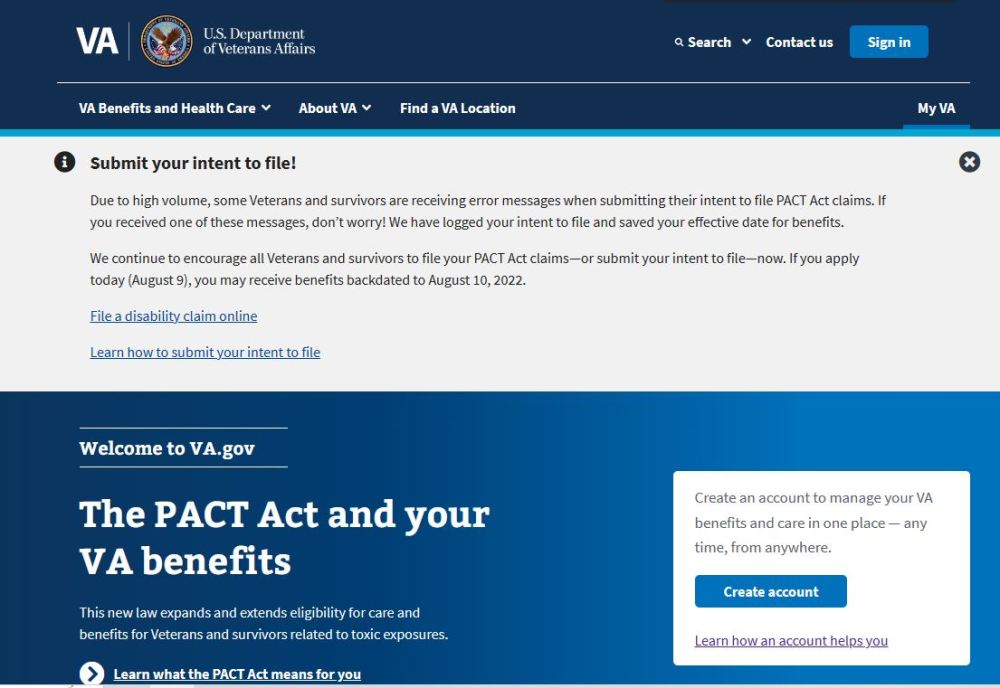 Posted on August 9, 2023 by Mister Mac Today is an important day for those affected by the PACT ACT. https://www.va.gov Share this: Click to email a link to a friend (Opens in new window) Email Click to print (Opens in new window) Print Click to share on LinkedIn (Opens in new window) LinkedIn Click to share on Pinterest (Opens in new window) Pinterest More Click to share on Facebook (Opens in new window) Facebook Like Loading... Related