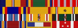 Third Row – American Campaign Medal – Asiatic Pacific Campaign Medal (1) – European-African-Middle Eastern Campaign Medal (1)